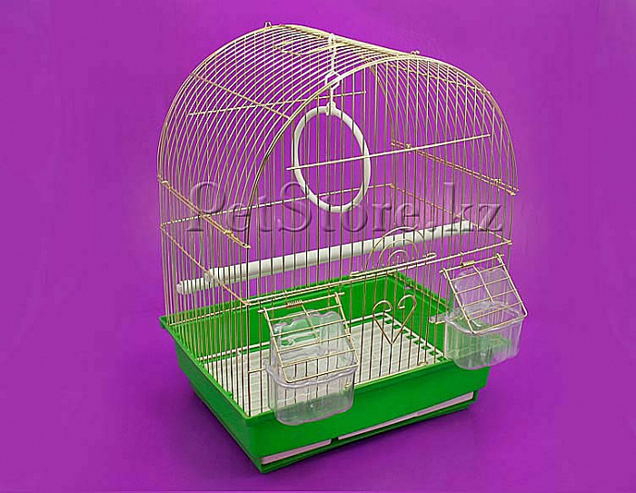 Прутья клетки стальные с покрытием «ЭКОэмаль» и «золото». Выдвижной высокий пластиковый поддон не позволит птичке разбрасывать мусор около своего жилья и удобен для ежедневного ухода за клеткой. Он легко извлекается и моется. Крыша у клетки полностью съемная.
