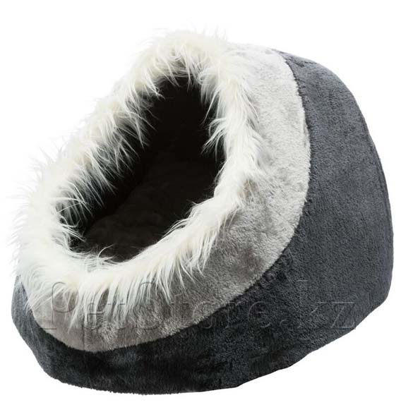 Это удобный домик с плюшевым покрытием подходит для маленьких собак и кошек. Лежак выполнен из плюша и оторочен искусственным мехом по краю.