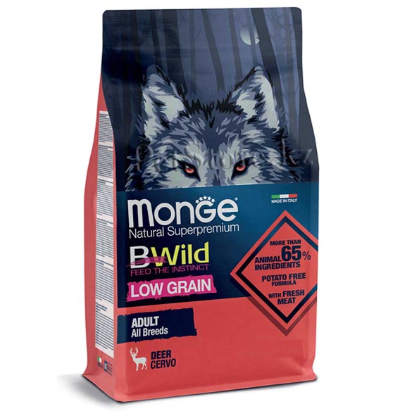 BWild является инновационным ассортиментом, созданным компанией MONGE, чтобы кормить свою собаку, как задумано природой. Все рецепты соблюдают диету эволюционного животного, которое, хотя и приспособилось к различным питательным веществам, но остается по существу плотоядным.
