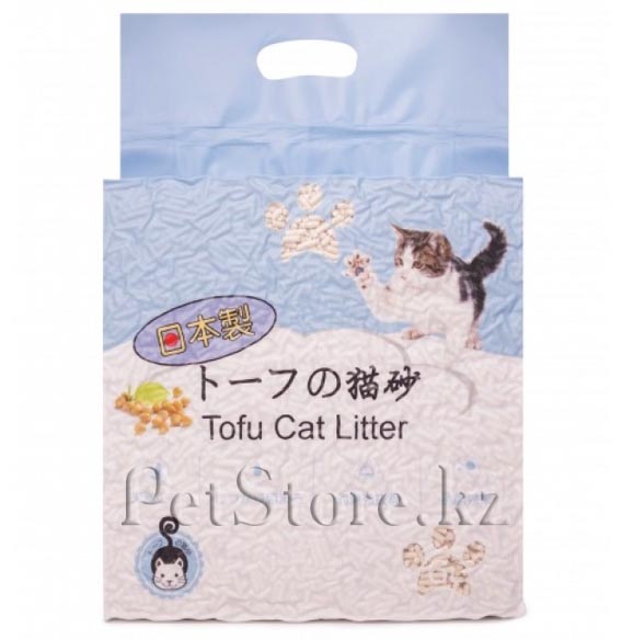 "Тофу" - спрессованная масса из соевых волокон, которые впитывают большое количество влаги. Волоконная структура обеспечивает качественное соединение гранул, образуя комок и блокируя запах внутри, а натуральные отдушки придают мягкий аромат. Использованный наполнитель можно выбрасывать в унитаз.
