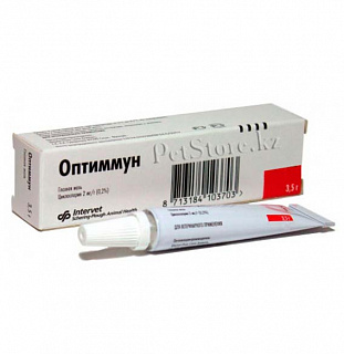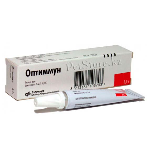 Оптиммун применяют для лечения болезней глаз аутоиммунной этиологии у собак: идиопатического сухого кератоконъюнктивита (СКК), плазматической инфильтрации третьего века и хронического поверхностного кератита (паннуса).
