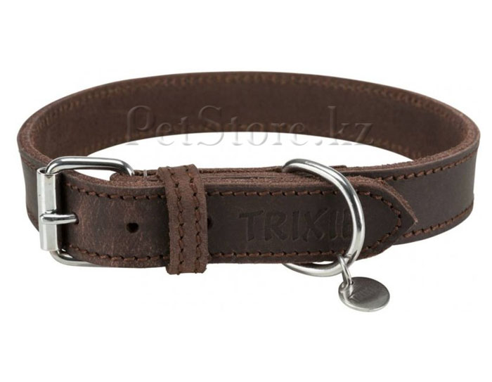 Ошейник из высококачественной натуральной кожи для собак. С металлическим полукольцом. Прочный и устойчивый на разрыв. С металлическим украшением в виде брелка.