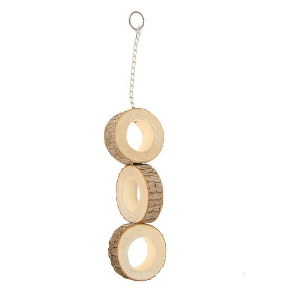 Игрушка для птиц из натурального дерева на цепочке.