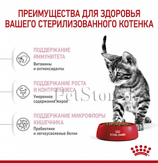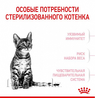 Котята после стерилизации все еще остаются детьми — им нужно много белка и кальция для роста. Обычные корма для взрослых стерилизованных кошек могут быть дефицитными по этим параметрам, а обычные корма для котят — слишком калорийными. Royal Canin Kitten Sterilised — это «золотая середина», гарантирующая, что ваш питомец вырастет крепким, здоровым и активным.