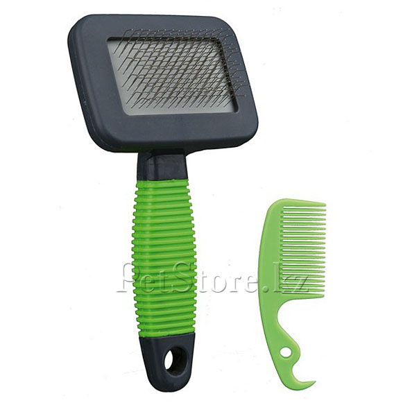 Мягкие проволочные зубчики позволяют проводить расчёсывание аккуратно, без раздражения кожного покрова животного. Ручка с нескользящей резиновой рукояткой.
